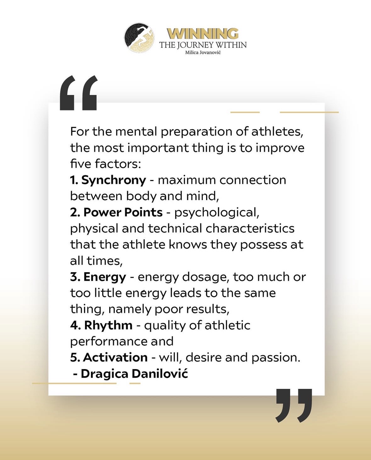 Hosted by Milica Jovanovic, a professional basketball player with over 20 years of experience in the game. This podcast takes you deep into the emotional, mental, and personal aspects of the athletic journey. Winning the Journey Within features conversations with athletes, coaches, referees, medical staff, families, and others in the sports world. With insights from accredited psychologists, Milica and her guests share valuable advice and techniques to support emotional healing, personal growth, and resilience. This podcast is designed to help you navigate the challenges, setbacks, and triumphs that come with being a part of the sports world. Join Milica and her guests as they dive into the complexities of life as an athlete and offer inspiring stories and practical tips to help you Win the Journey Within.
